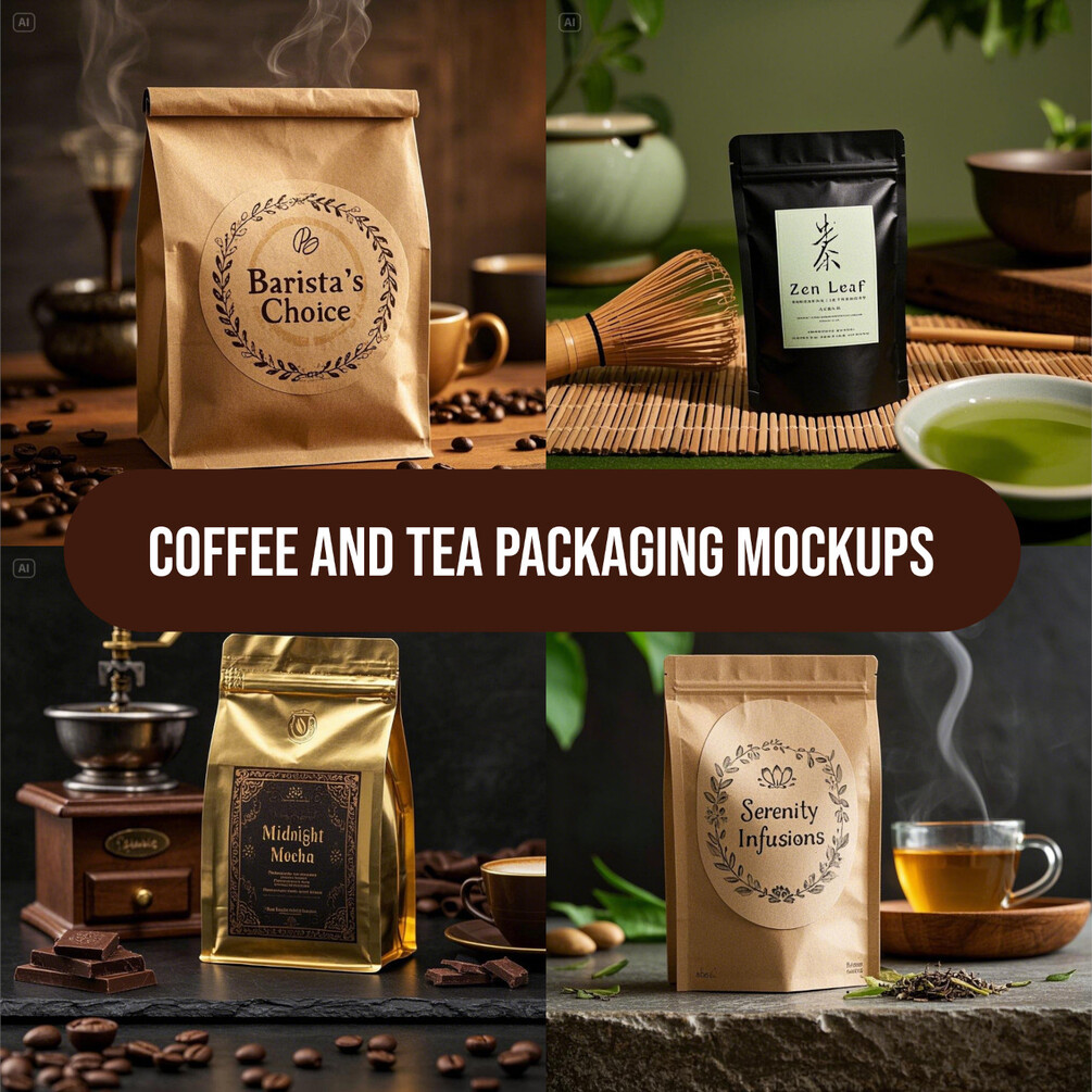 Realistic Coffee and Tea Packaging Mockup Prompt Template